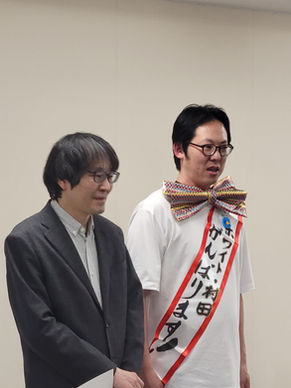 お礼の品の蝶ネクタイの画像が出てきます)宇山理事長にはお礼の品を喜んでいただけたようです